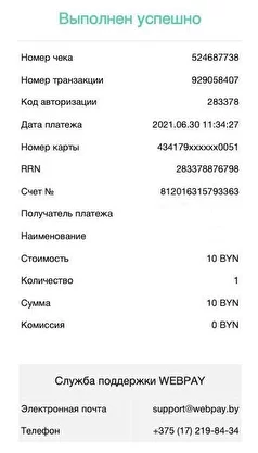 Обращаем ваше внимание, что после совершения оплаты с использованием банковской карты необходимо сохранять полученные карт-чеки (подтверждения об оплате)* для сверки с выпиской из карт-счёта (с целью подтверждения совершённых операций в случае возникновения спорных ситуаций).